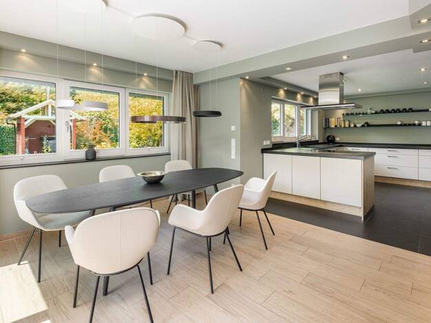 Modern interpretierter Chalet-Stil, großflächige Fensterfronten und ein behagliches, lichtdurchflutetes Ambiente prägen dieses äußerst reizvolle Objekt. Eine geradlinige, von Holz und Glas dominierte...
