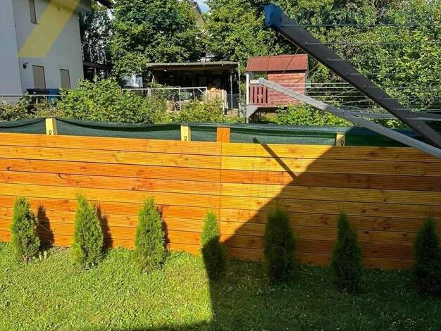 Einfamilienhaus in ruhiger Lage, 8 Zimmer, 2 Bäder , eines alters/behindertengerecht umgebaut. Zugang zum Haus ist mit einem Rollstuhl möglich. 2 Garagen mit E- Antrieb, Terrasse, Schuppen für Garten...