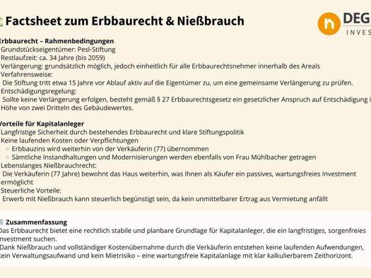 Die angebotene Immobilie wird von der bisherigen Eigentümerin (77 Jahre) mit Nießbrauch auf Lebenszeit verkauft. Dies bedeutet, dass sie weiterhin mietfrei in der Immobilie bleiben wird und ein Selbs...