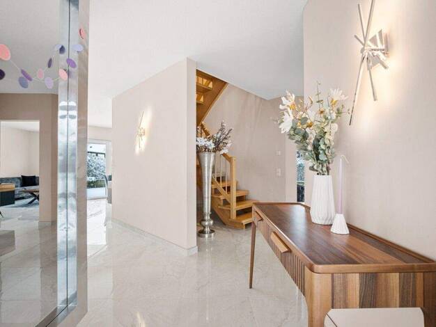 Diese einzigartige Immobilie thront auf der begehrten Westlichen Höhe in Flensburg. 2018 umfassend modernisiert, vereint sie historische Stilelemente mit zeitgemäßer Eleganz und entfaltet ein Wohnkon...