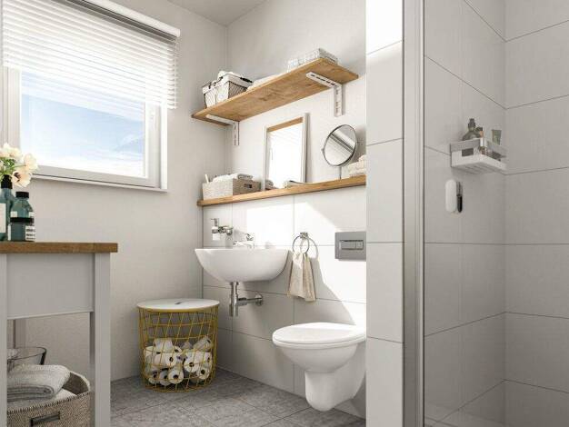 Das Flair 113 bietet alles, was ein Massivhaus gemütlich macht. Im Erdgeschoss betreten Sie ein geräumiges Wohn- und Esszimmer, eine Küche mit genügend Freiraum, ein Gäste-WC und einen Hauswirtschaft...