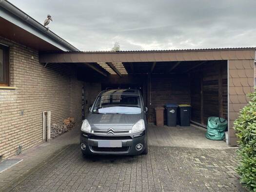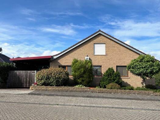 Dieses moderne Eigenheim mit Doppelcarport und Geräteraum befindet sich auf einem Eckgrundstück in einer vor wenigen Jahren neu entstandenen Wohnsiedlung in Spelle. Das Gartengrundstück mit der Terra...