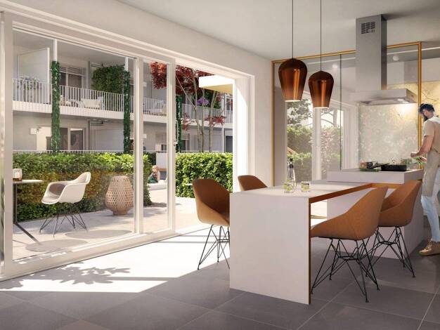 Im ruhigen, geschützten Innenbereich liegen vier elegante Stadthäuser mit jeweils ca. 123 m² Wohnfläche sowie ein Stadthaus mit etwa 140 m² Wohnfläche. Die auf den ersten Blick puristisch anmutenden ...