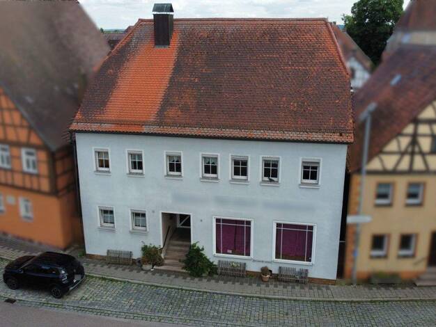 Geschäfte des tägl. Bedarfs, Ärzte, Grundschule und Kindergarten sind vor Ort. Ansbach ist ca. 13km entfernt. Im Erdgeschoss befinden sich drei Zimmer, die Küche, ein Badezimmer mit Wanne und WC. Übe...