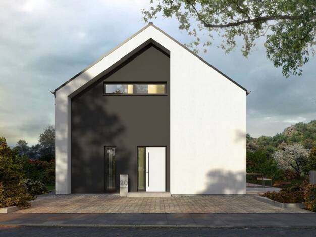 Klassisch und stilvoll präsentiert sich das 2-geschossige Einfamilienhaus Design 13. Unter dem Satteldach vereinen sich moderne Architektur und höchster Wohnkomfort. Im Entrée trennt die offene Trepp...