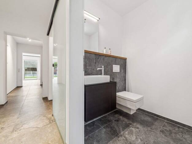 Die City Villa 1 überzeugt mit einer stilvollen Kombination aus elegantem Design und zeitloser Anziehungskraft. Der weitläufige Wohn- und Essbereich schafft eine einladende Atmosphäre, die ideale Vor...