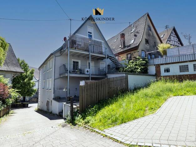 Kurzbeschreibung Modernisiertes MFH in Backnang-Steinbach. 213 qm Wohnfläche in 2 WE, Gewerbeoption oder Einliegerwohnung zusätzlich möglich. 972 qm Grundstück, weitläufiger Naturgarten, Südhanglage....