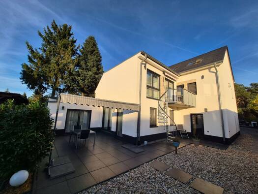 Es handelt sich um eine in moderner Architektur und klaren Linien gebaute Doppelhaushälfte mit begrüntem Flachdach, einem Carport und einem Koiteich mit kleinem Wasserfall. Die Doppelhaushälfte wurde...
