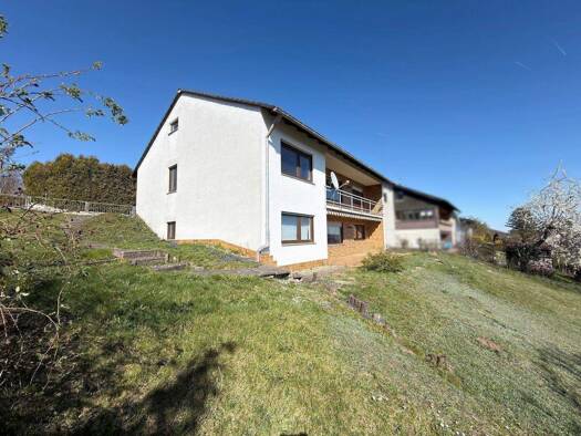 Dieses freistehende Zweifamilienhaus aus dem Jahr 1975 befindet sich in attraktiver Hanglage und bietet erhebliches Potenzial zur individuellen Gestaltung. Das Haus verfügt über zwei separate Wohnein...