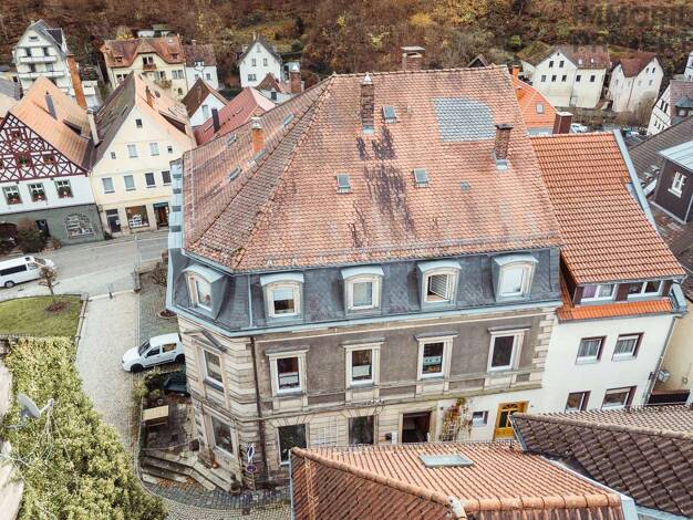 Dieses historische Mehrfamilienhaus (ca. 1885) befindet sich in markanter Ecklage mitten im Stadtkern von Bad Berneck. Die klassische Architektur und die direkte Nähe zu Marktplatz und Kurpark verlei...