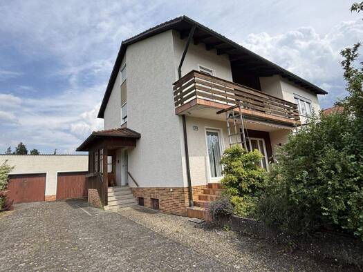 Zweifamilienhaus mit zwei Stockwerken und ausgebautem Dachgeschoss, insgesamt 293,38 m² Wohnfläche, samt Doppelgarage und Nebengebäude. Baujahr unbekannt, Umbau im Obergeschoss und Dachgeschossausbau...