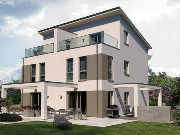 Objekt projektiert. Diese stattliche Walmdachvilla lehnt sich an den herrschaftlichen Baustil der Gründerzeit an. Blickfang ist nicht nur das Querhaus, welches mit einem Satteldach abschließt, sonder...
