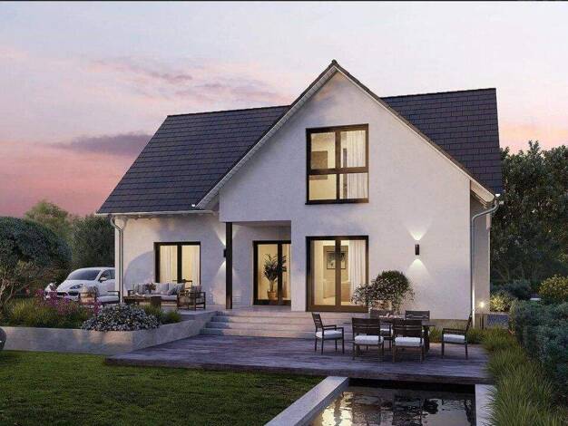 Unter dem Walmdach bieten zwei achsensymmetrische Haushälften unbeschwertes und exklusives Wohnen. Die durchdachte Grundrissgestaltung eignet sich sowohl für Familien mit Kindern als auch für Paare, ...