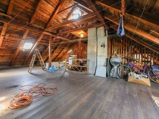 Zweifamilienhaus mit zwei Stockwerken, teilweise unterkellert, ausgebautes Dachgeschoss, 180 Quadratmeter Wohnfläche, dazu gehören zwei angrenzende Scheunen, die im Inneren miteinander verbunden sind...