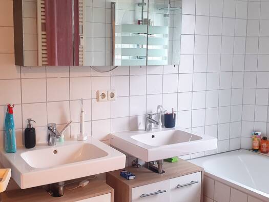 Das Haus bietet zwei Familien Platz: Das Erdgeschoss ist als 3-Zimmer-Wohnung gestaltet: Neben dem Wohnzimmer finden Sie eine separate Küche, zwei Schlafzimmer, das Familienbad sowie Abstellraum, Gar...