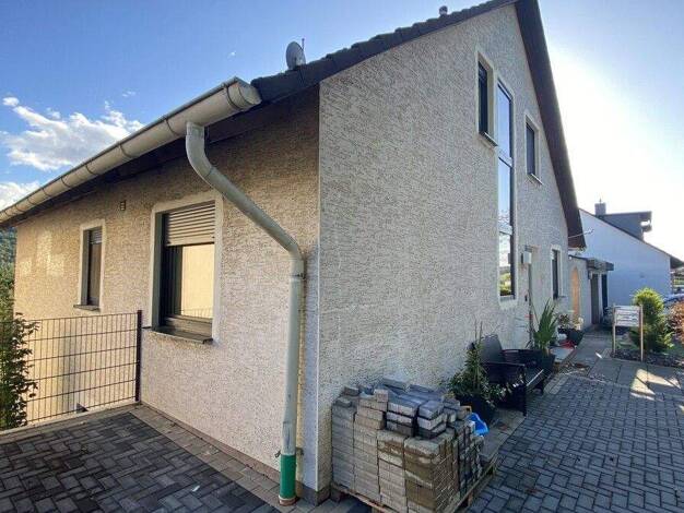 Zweifamilienhaus in Fachwerkstil, am Hang gelegen, zweistöckig mit einem Anbau, eingeschossig mit ausgebautem Dachgeschoss. Die Wohnfläche beträgt 233 Quadratmeter, mit gewerblichen Nebengebäuden ins...