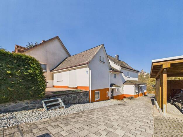 Dieses charmante Zweifamilienhaus vereint modernen Wohnkomfort mit vielseitigen Nutzungsmöglichkeiten und einem ganz besonderen Highlight: einem beeindruckenden Schlossblick. Der neuere Gebäudeteil p...