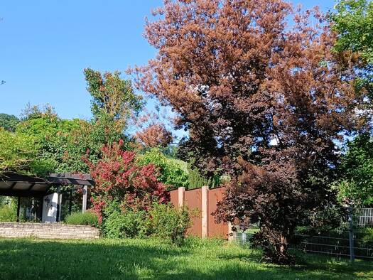 Lichtdurchflutetes Einfamilienhaus mit großem schön angelegten Garten und altem Baumbestand, Freisitz mit Kamin und direktem Zugang zu den Weinbergwegen. Zwei große Balkone und eine Terrasse direkt a...