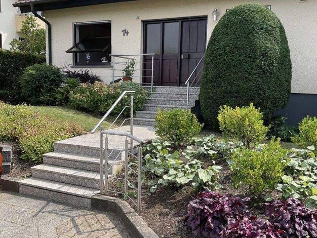 Es handelt sich um eine gepflegte Doppelhaushälfte (5 Zimmer) mit großzügigem Terrassen (vorne und hinter dem Haus) - u. Gartenbereich sowie zusätzlichem Freisitz mit Edelstahlgeländer über der Garag...