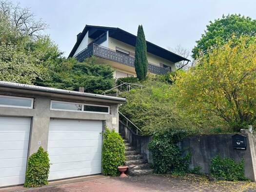 Objektbeschreibung Das Grundstück befindet sich in Hanglage. Die geräumige Doppelgarage mit gepflasterter Zufahrt befindet sich an der Straße unterhalb des Grundstücks, von hier aus führen Steintrepp...