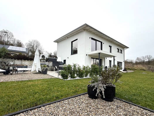 Das stillvolle Einfamilienhaus wurde im Jahr 2021 erbaut und ist durch die hochwertige Bausubstanz, der liebevoll angelegten Außenanlagen mit unverbaubarer Mikrolage ein wahres Juwel auf dem Markt. I...
