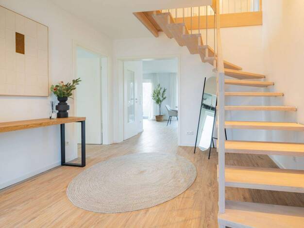 Dieses stilvolle Einfamilienhaus vereint moderne Ausstattung mit gemütlicher Wohnatmosphäre und einem idyllischen Garten. Die gelungene Kombination aus großzügigen Grundrissen, hochwertigen Materiali...