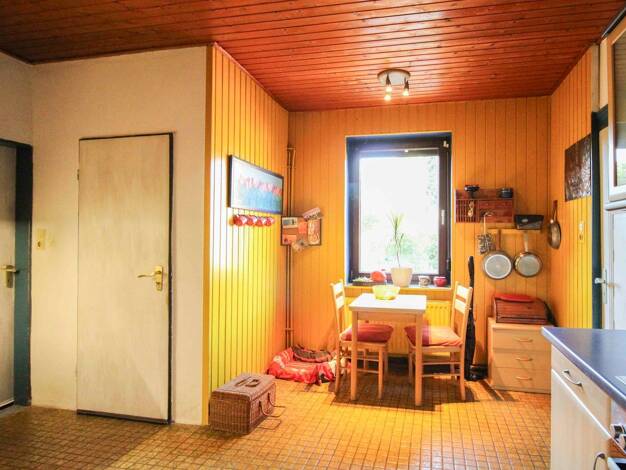 Dieses Einfamilienhaus aus dem Jahr 1951 bietet auf einer Wohnfläche von ca. 102,6 m² Raum für individuelle Wohnideen. Das Erdgeschoß bietet einen großen Wohn- und Essbereich mit Kamin, eine Einbaukü...