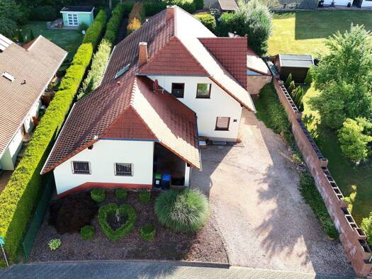 Diese großzügige, freistehende Immobilie liegt auf einem weitläufigen, nahezu ebenen Grundstück von ca. 3.049 m² und bietet ein außergewöhnlich großzügiges Wohnumfeld. Über ein Einfahrtstor führt ein...