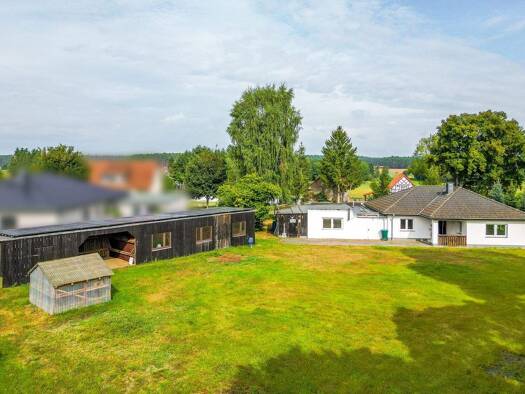 Großes, eingeschossiges, sanierungsbedürftiges Einfamilienhaus mit Nebengebäude mit Nutzung als Stallung, Garage (ist vom Haus begehbar) und Werkstatt, sowie großem Garten mit Brunnen in guter Ortsla...