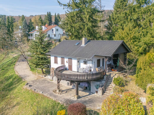 Das 1985 in massiver Bauweise errichtete und unterkellerte Haus präsentiert sich als durchdacht konzipierter Bungalow mit einer separaten Einliegerwohnung im Dachgeschoss. Die hervorragende Positioni...