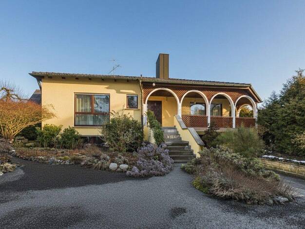 Freistehendes Einfamilienhaus im "Bungalow-Stil" mit großzügiger Raumaufteilung in modernem Siedlungsgebiet in den Haßbergen gelegen. Haus verfügt über einen modernen Grundriss mit Garage und großem ...