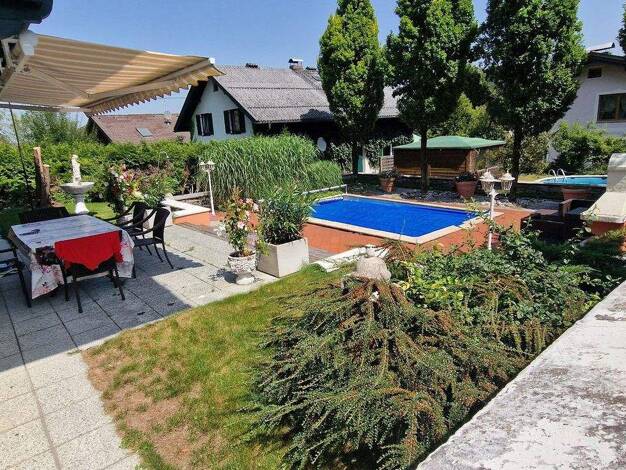 Objektbeschreibung Dieser Bungalow besticht in erster Linie durch seine ruhige und traumhafte Lage inmitten der Natur mit Blick auf den Untersberg. Sie können das Objekt als Ferienhaus nutzen oder si...