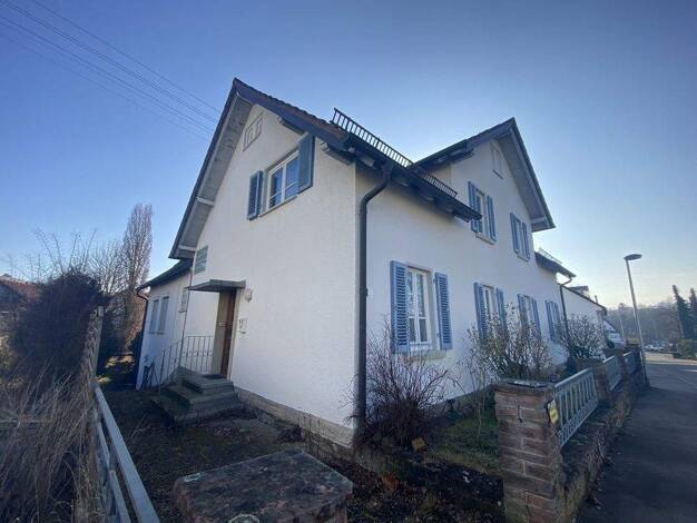 Das charmante Wohnhaus in Ortsrandlage befindet sich in Balingen-Heselwangen. Im EG sind ein helles Gästezimmer, eine Waschküche, ein Vorratsraum und ein Heizraum untergebracht. Die Essküche, das ein...
