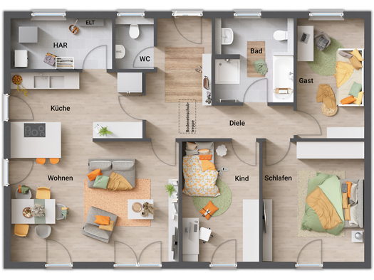 Objektbeschreibung Das TC „Aura 125“ überzeugt mit seiner cleveren Bauweise und flexiblen Gestaltungsmöglichkeiten. Dank seiner kompakten Außenmaße findet dieses Haus gerade auf kleinen und schmalen ...