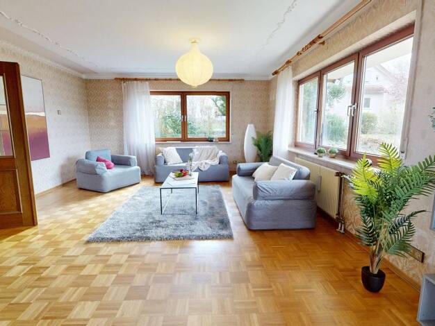 Das charmant gelegene Zweifamilienhaus besticht durch seine vielseitigen Nutzungsmöglichkeiten und den weitläufigen XXL-Garten. Sowohl im Erd- als auch im Obergeschoss befinden sich jeweils zwei lich...
