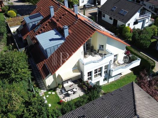 Freistehendes Architektenhaus mit Einliegerwohnung, 2 Terrassen, 1 Balkon, Garten und zwei Einzelgaragen. Dieses freistehende Einfamilienhaus mit Einliegerwohnung (Architektenhaus) wurde 1983 in mass...