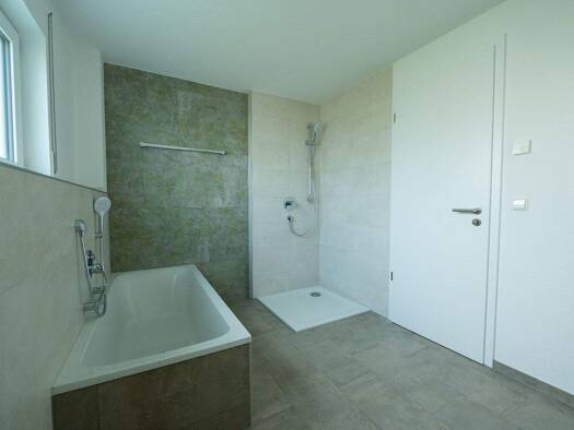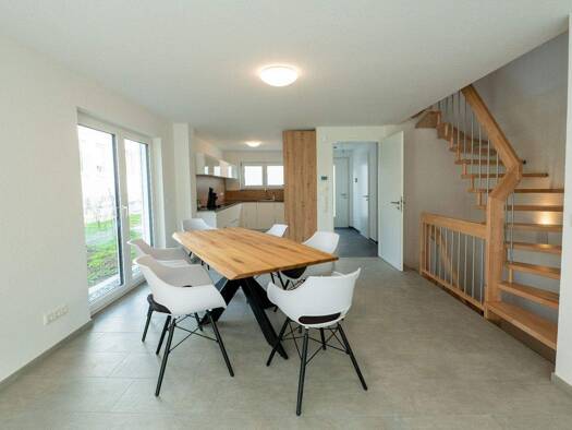 Diese ansprechende Doppelhaushälfte verbindet moderne Architektur mit durchdachtem Wohnkomfort. Im Erdgeschoss laden ein großzügiger Wohn-Essbereich und eine vollständig ausgestattete Küche zum gesel...
