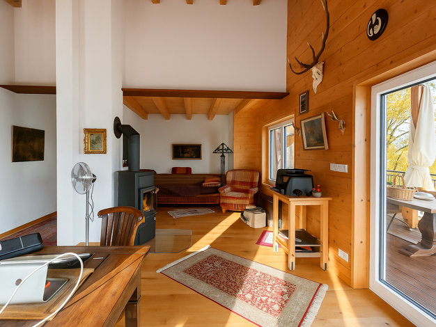 Nahezu AUTARKE ENERGIEVERSORGUNG: Das großzügig gestaltete Holzhaus in Ständerbauweise wurde mit viel Liebe zum Detail errichtet und bietet auf zwei Etagen sowie einem ausbaufähigen Dachgeschoss viel...