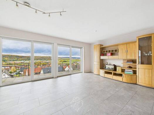 Panorama-Villa mit 180°-Maintal-Blick - Effizienz A+ Es gibt Häuser, die man betritt - und solche, die man nie wieder vergisst. Hier öffnet sich ein 180°-Panorama über das gesamte Maintal : Von Thüng...
