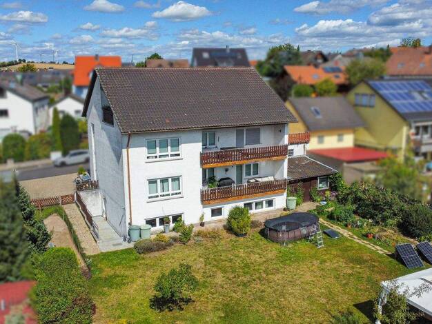 Dieses 1976 in massiver Bauweise errichtete Objekt zeichnet sich durch seine vielfältige Einsetzbarkeit aus. Es handelt sich um ein Dreifamilienhaus, dessen 3-Zi-Erdgeschosswohnung mit ca. 89,55 m² n...