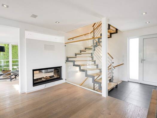 Dieses elegante Einfamilienhaus überzeugt durch eine zurückhaltende, zugleich zeitlos-moderne Architektursprache, die sich dezent und stilvoll in die Umgebung einfügt. Die Kombination aus hellgrauen ...