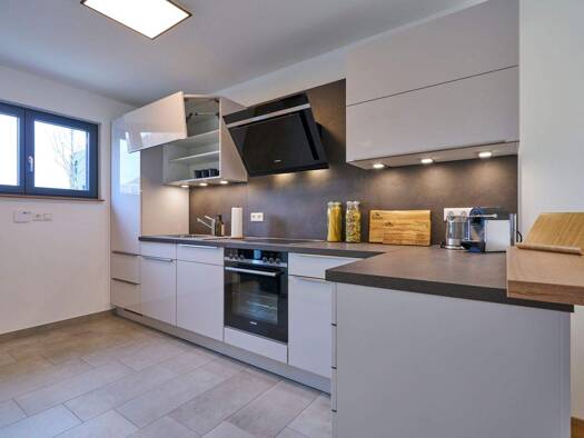 Was ich an diesem Haus besonders liebe: • moderne Architektur, zukunftsorientierte Bauweise • stilvolle Holzfassade, Holz-Alu-Fenster • coole „Sundowner“ Dachterrasse nach Westen • schwarze Markenküc...