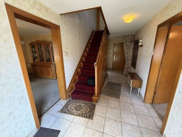 Zum Verkauf steht ein massiv gebautes Einfamilienhaus aus dem Baujahr 1960 mit einer Wohnfläche von ca. 155 m² auf einem 595 m² großen Grundstück. Im Erdgeschoss befinden sich das Wohnzimmer, das Ess...
