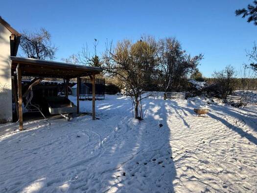 Objektbeschreibung idyllisch gelegen und nur 5 Mn. Fußweg zum Badestrand am Zeesener See komfortabel gebautes Einfamilienhaus im Bungalow-Stil mit Garage und Holzhaus, überdachter Südterrasse mit Zug...