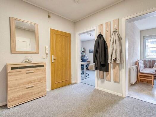 Dieses Reihenmittelhaus aus dem Jahr 1958 bietet auf ca. 82 m² Wohnfläche insgesamt vier Zimmer in ruhiger Wohnlage von Bremen-Huchting. Im Hochparterre befinden sich ein Windfang sowie ein Flur, von...