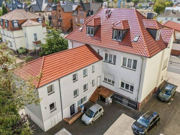 Mitten in Büdingen, am Rande der historischen Altstadt, befindet sich dieses Mehrfamilienhaus aus dem Jahr 1940 auf einem ca. 648 m² großen Grundstück. Das vordere Gebäude sowie der Anbau wurden im J...