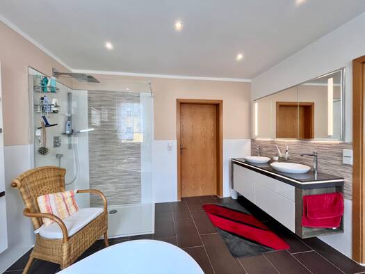 Der liebevoll gepflegten Garten, bietet Ruhe und Privatsphäre. Zwei geräumige Garagen ergänzen das Anwesen und bieten ausreichend Platz für Fahrzeuge und Lagerung. Die sorgfältige Anordnung des Garte...
