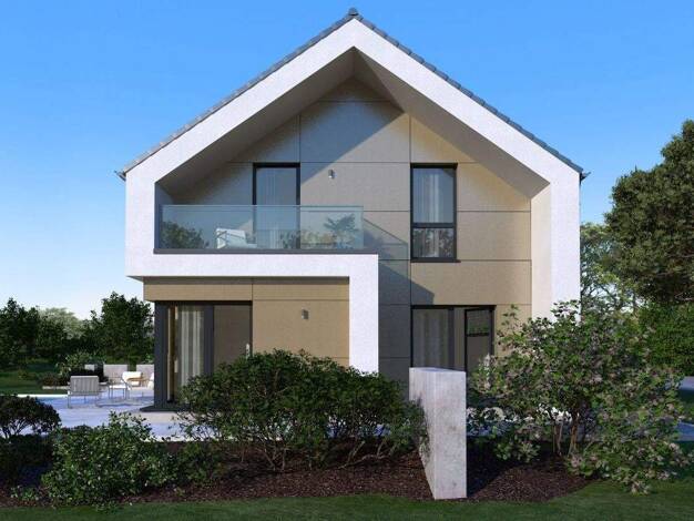 Klassisch und stilvoll präsentiert sich das 2-geschossige Einfamilienhaus Design 13. Unter dem Satteldach vereinen sich moderne Architektur und höchster Wohnkomfort. Im Entrée trennt die offene Trepp...
