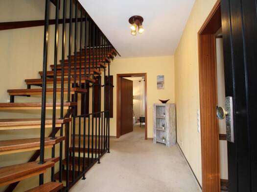 Nach dem Betreten des Hauses gelangen Sie in den großzügigen, mit Teppich ausgelegten L-Flur, von dem alle Räume des Erdgeschosses abgehen. Besonders hervorzuheben ist, dass über das "L" des Flures d...