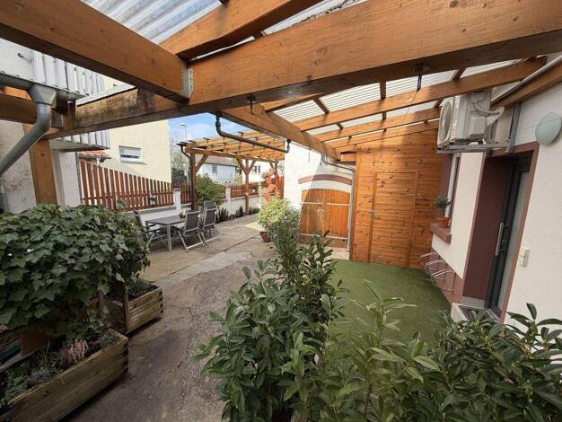 Objektbeschreibung Das 120 m² große Reihen-Mittel-Haus liegt im schönen Ort Walluf Raumaufteilung Sie betreten das Haus über den Flur, auf der rechten Seite befindet sich die Küche. Die Küche ist mit...